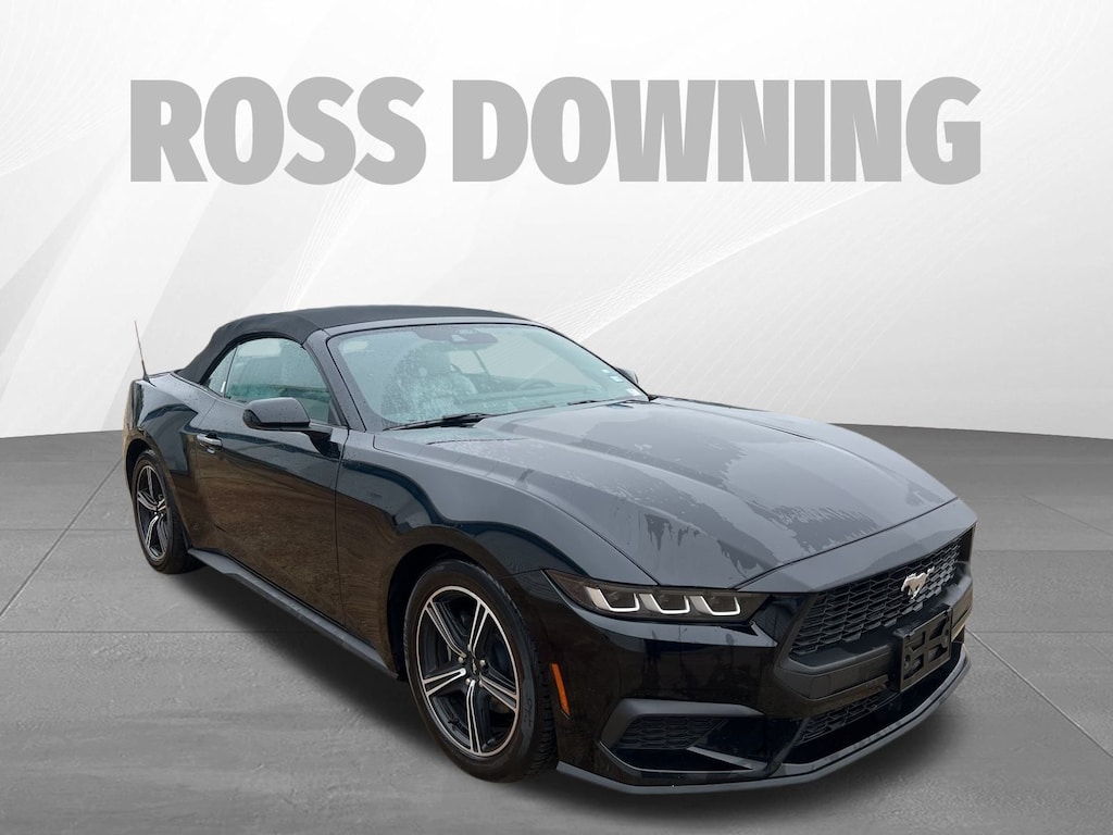 Shadow Black 2024 Ford Mustang EcoBoost Premium RWD 10-Speed Automatic EcoBoost 2.3L I4 GTDi DOHC Turbocharged VCT Mustang EcoBoost Premium, 2D Convertible, EcoBoost 2.3L I4 GTDi DOHC Turbocharged VCT, 10-Speed Automatic, RWD, Shadow Black, Space Gray Premium Synthetic, Emergency communication system: 911 Assist, Knee airbag, Occupant sensing airbag, Rain sensing wipers, SYNC 4.0 QNX, 4-Wheel Disc Brakes, 9 Speakers, ABS brakes, Air Conditioning, Alloy wheels, AM/FM radio: SiriusXM with 360L, AM/FM Stereo, Auto High-beam Headlights, Automatic temperature control, Brake assist, Bumpers: body-color, Compass, Convertible roof lining, Delay-off headlights, Driver door bin, Driver vanity mirror, Dual front impact airbags, Dual front side impact airbags, Electronic Stability Control, Exterior Parking Camera Rear, Four wheel independent suspension, Front anti-roll bar, Front Bucket Seats, Front Center Armrest, Front dual zone A/C, Front reading lights, Fully automatic headlights, Glass rear window, Heated front seats, Illuminated entry, Leather Shift Knob, Low tire pressure warning, Outside temperature display, Overhead console, Panic alarm, Passenger door bin, Passenger vanity mirror, Power convertible roof, Power door mirrors, Power driver seat, Power steering, Power windows, Radio data system, Rear anti-roll bar, Rear Parking Sensors, Rear window defroster, Remote keyless entry, Security system, Speed control, Speed-sensing steering, Speed-Sensitive Wipers, Sport steering wheel, Steering wheel mounted audio controls, Tachometer, Telescoping steering wheel, Tilt steering wheel, Traction control, Trip computer, Variably intermittent wipers, Voltmeter, Wheels: 18" x 8" Machined-Face Aluminum, Mustang EcoBoost Premium, 2D Convertible, EcoBoost 2.3L I4 GTDi DOHC Turbocharged VCT, 10-Speed Automatic, RWD, Shadow Black, Space Gray Premium Synthetic, Emergency communication system: 911 Assist, Knee airbag, Occupant sensing airbag, Rain sensing wipers, SYNC 4.0 QNX.